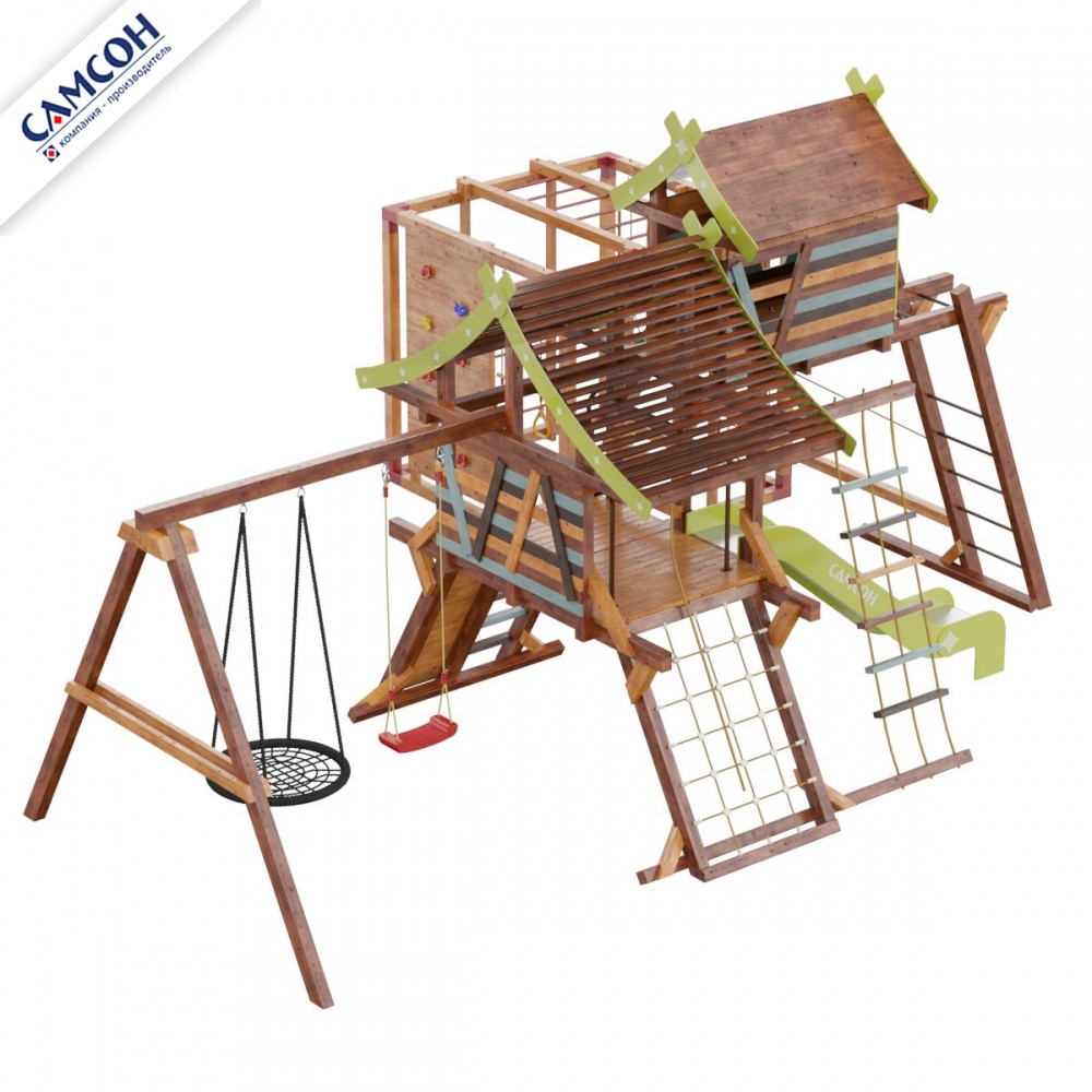 Товар поставляется в разобранном виде. В комплект для самостоятельной сборки входит подробная инструкция по сборке товара. Товар упакован в гофрокартонные короба. Установка детской игровой площадки проводится на ровной поверхности, свободной от насаждений. Рекомендуем зафиксировать конструкцию используя анкера любой формы.