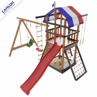 Товар поставляется в разобранном виде. В комплект для самостоятельной сборки входит подробная инструкция по сборке товара. Установка детской игровой площадки проводится на ровной поверхности, свободной от насаждений. Размер площадки не менее 6,8м х 6,2м. Рекомендуем зафиксировать конструкцию используя анкера любой формы.